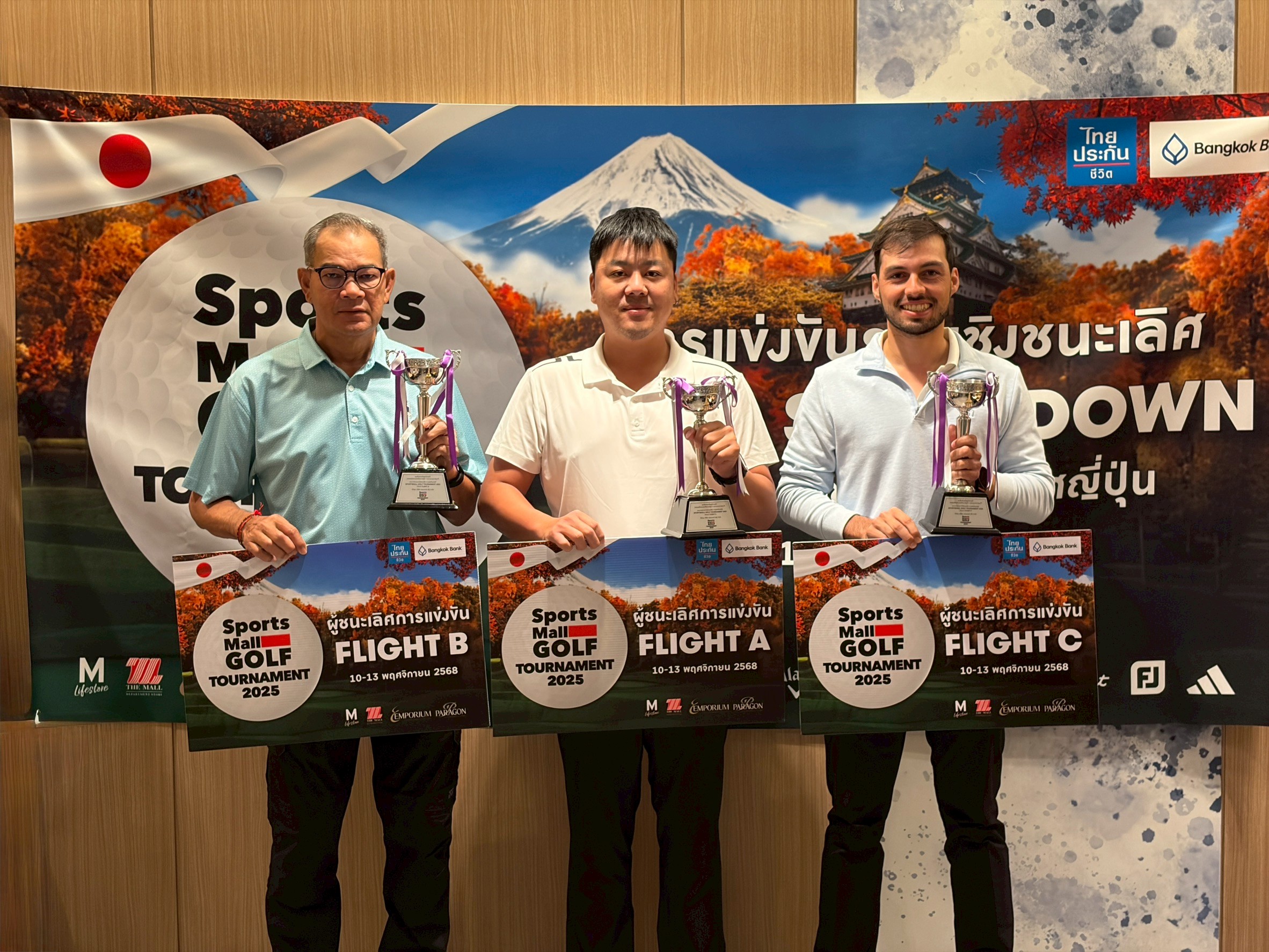 ปิดฉากลงอย่างสมบูรณ์ สำหรับการแข่งขัน “สปอร์ตมอลล์ กอล์ฟ ทัวร์นาเม้นท์ 2025”  ที่จัดโดย สปอร์ตมอลล์ (SPORTSMALL) เดอะมอลล์ กรุ๊ป ผู้นำแหล่งรวมสินค้าและอุปกรณ์กีฬาจากแบรนด์ชั้นนำ และผู้นำนวัตกรรมอุปกรณ์ และสินค้ากอล์ฟ อันดับ 1 ของเมืองไทย ร่วมกับ บริษัท ไทยประกันชีวิต จำกัด (มหาชน), ธนาคารกรุงเทพ จำกัด (มหาชน) และพันธมิตรแบรนด์กอล์ฟชั้นนำระดับโลก ได้แก่ CALLAWAY, SRIXON, BRIDGESTONE GOLF, MIZUNO GOLF, TITLEIST, FOOTJOY และ ADIDAS GOLF การแข่งขันกอล์ฟสมัครเล่นสุดยิ่งใหญ่  จัดต่อเนื่องปีที่ 17  โดยได้ผู้ชนะเลิศจากการแข่งขันทั้ง 3 ไฟล์ท พร้อมเข้ารับรางวัลเกียรติยศถ้วยพระราชทานของสมเด็จพระกนิษฐาธิราชเจ้า กรมสมเด็จพระเทพรัตนราชสุดา ฯ สยามบรมราชกุมารี