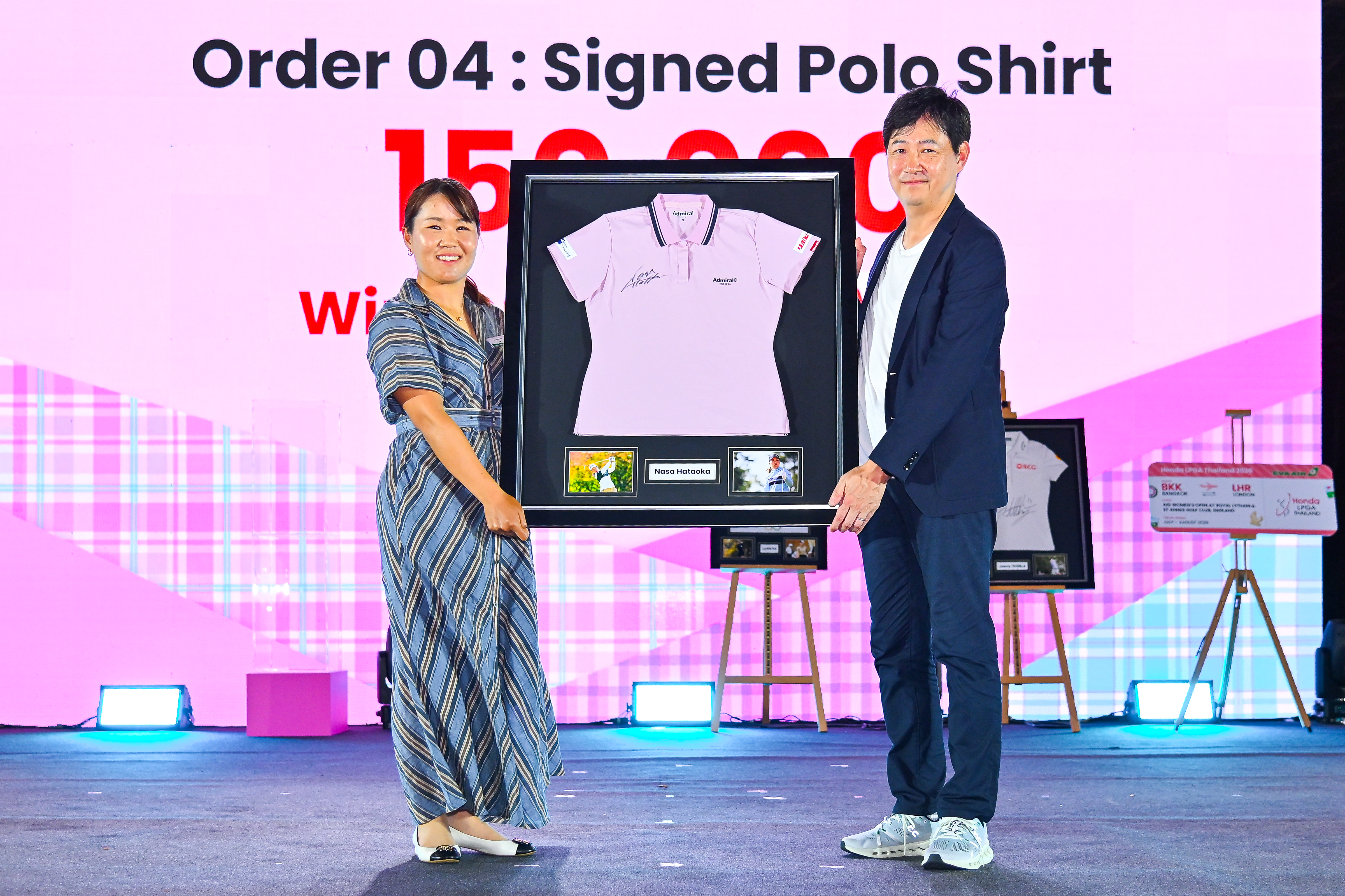 ชุดแข่งขันพร้อมลายเซ็นของ นาสะ ฮาตาโอกะ จากญี่ปุ่นเจ้าของแชมป์แอลพีจีเอ 7 รายการ ซึ่งผู้ชนะการประมูล ได้แก่ คุณอาคิระ โคอิมาอิ รองประธานกรรมการบริหาร บริษัท เอเชี่ยนฮอนด้ามอเตอร์ จำกัด ถูกประมูลในราคา 150,000 บาท