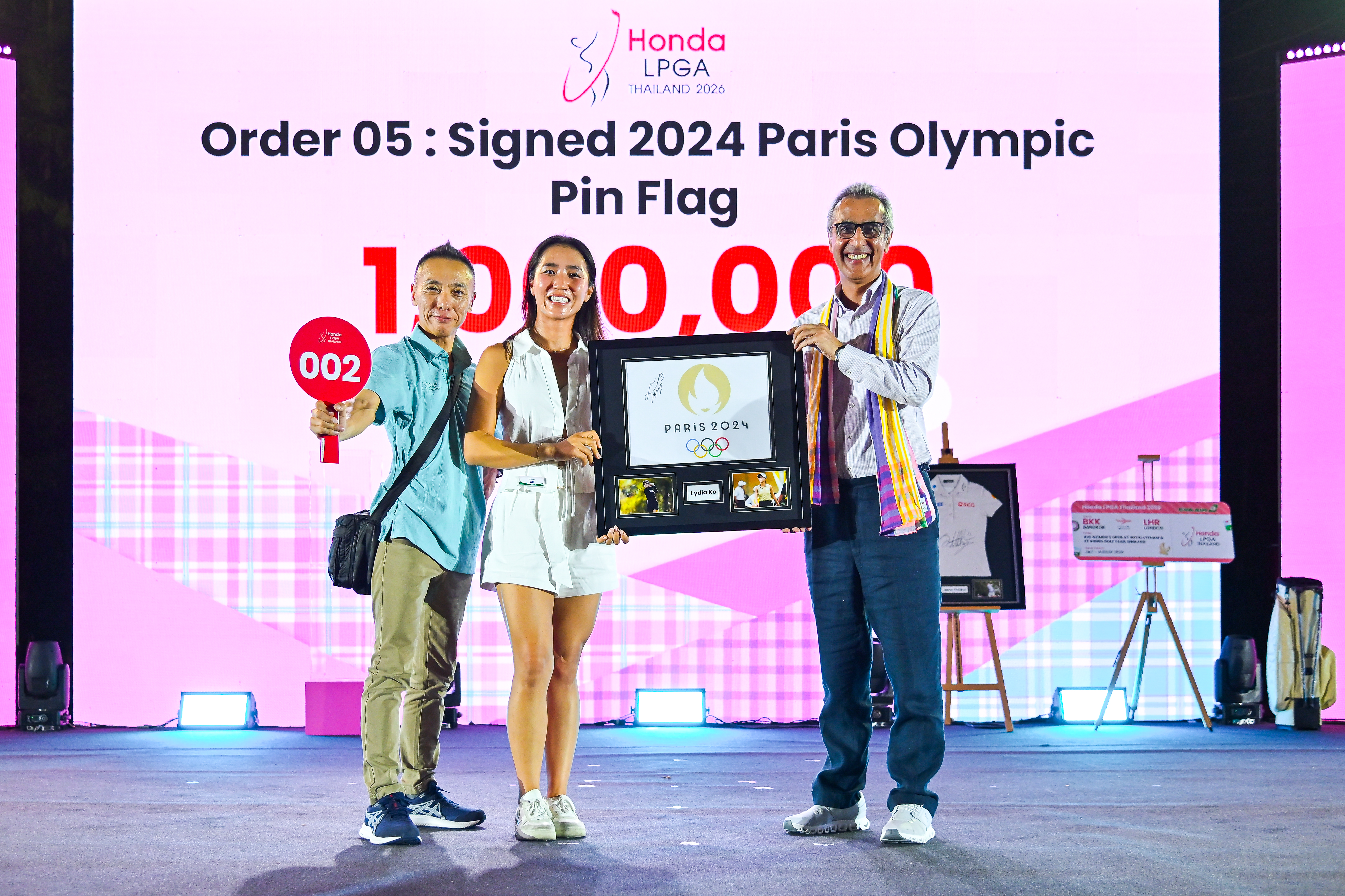 พร้อมกันนี้ยังมีแพ็กเกจพิเศษ บัตรโดยสารเครื่องบินชั้นธุรกิจ กรุงเทพฯ–ลอนดอน 2 ที่นั่ง จากสายการบิน EVA Air พร้อมสิทธิ์ VIP Hospitality เข้าชมการแข่งขัน AIG Women’s Open 2026 ที่สนาม Royal Lytham & St. Annes ประเทศอังกฤษ โดยผู้ที่ชนะการประมูล คือ คุณวัชรพล พันธุ์เณร ผู้อำนวยการอาวุโสด้านกลยุทธ์การตลาด บริษัท ไอเอ็มจี เซอร์วิสเซส (ประเทศไทย) จำกัด ในราคา 130,000 บาท